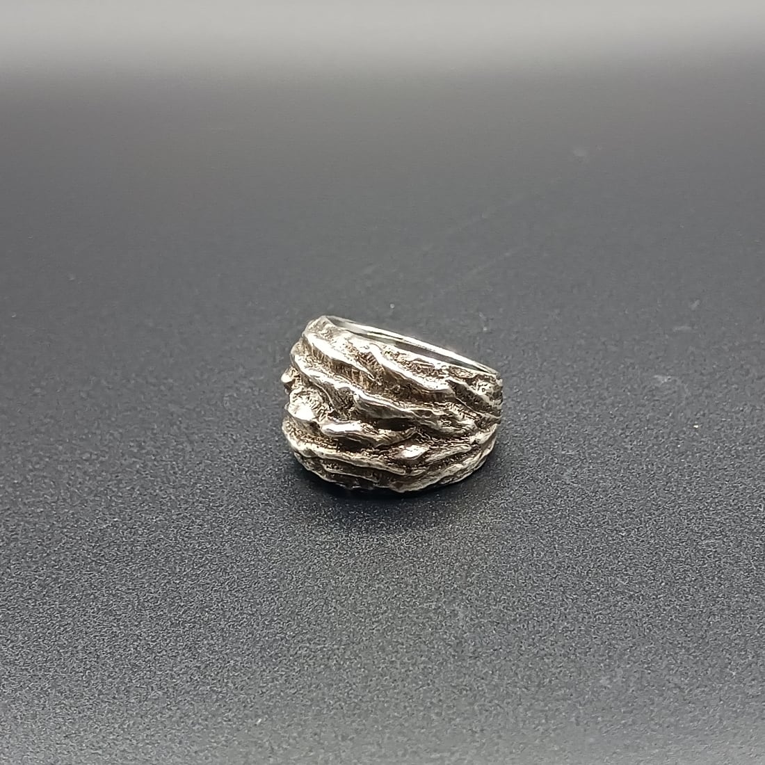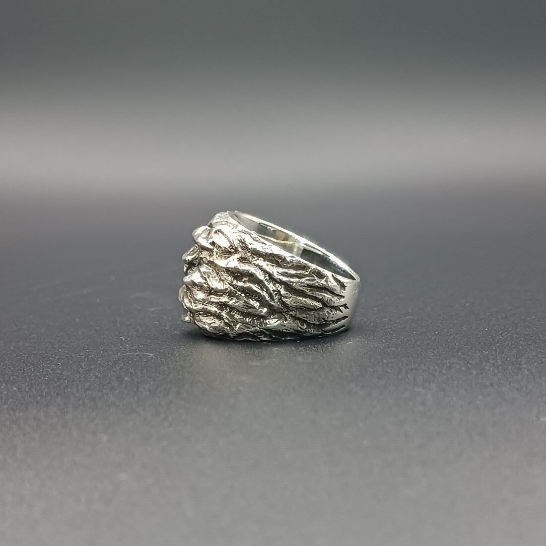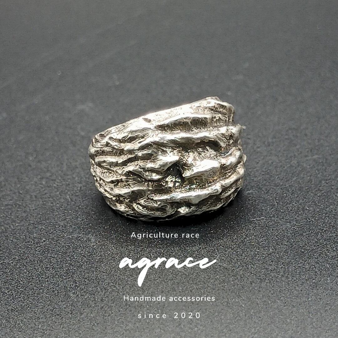 シルバーリング いぶしシルバー 大ぶりリング メンズリング ユニセックスリング 個性的リング ハンドメイドリング silver925 マットシルバー 存在感リング 中指リング 人差し指リング 一点物リング 岩肌デザイン 彫金アクセサリー