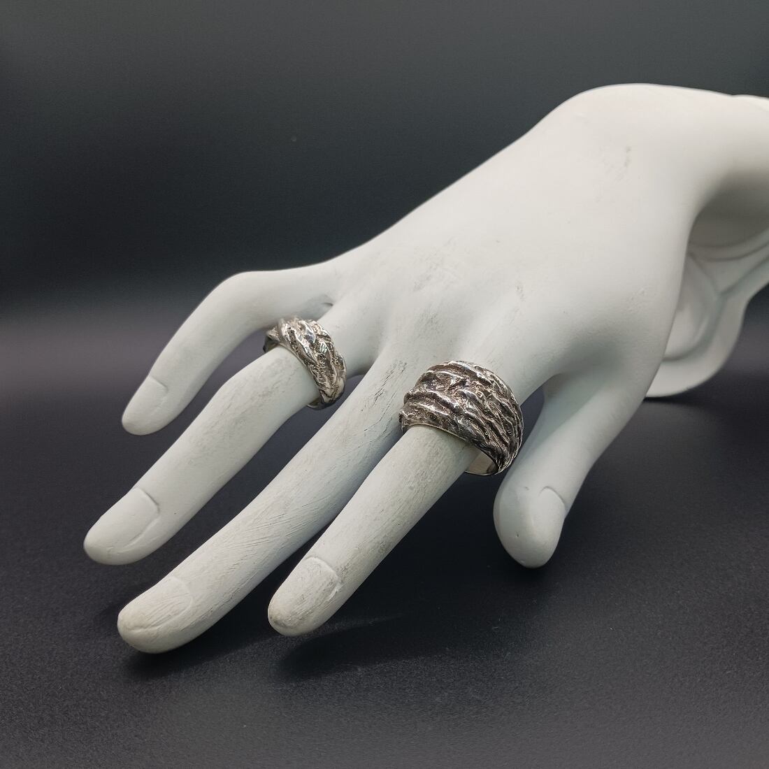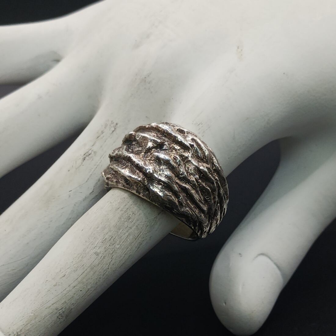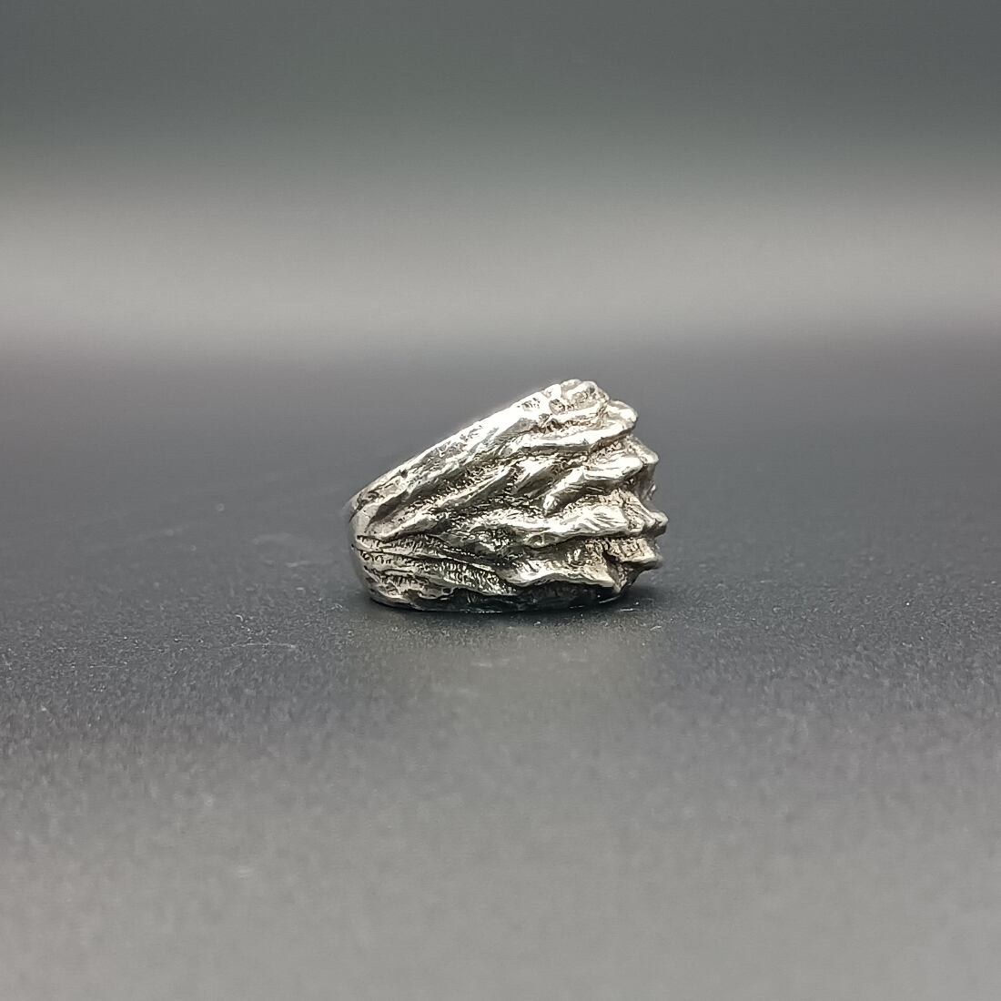 シルバーリング いぶしシルバー 大ぶりリング メンズリング ユニセックスリング 個性的リング ハンドメイドリング silver925 マットシルバー 存在感リング 中指リング 人差し指リング 一点物リング 岩肌デザイン 彫金アクセサリー