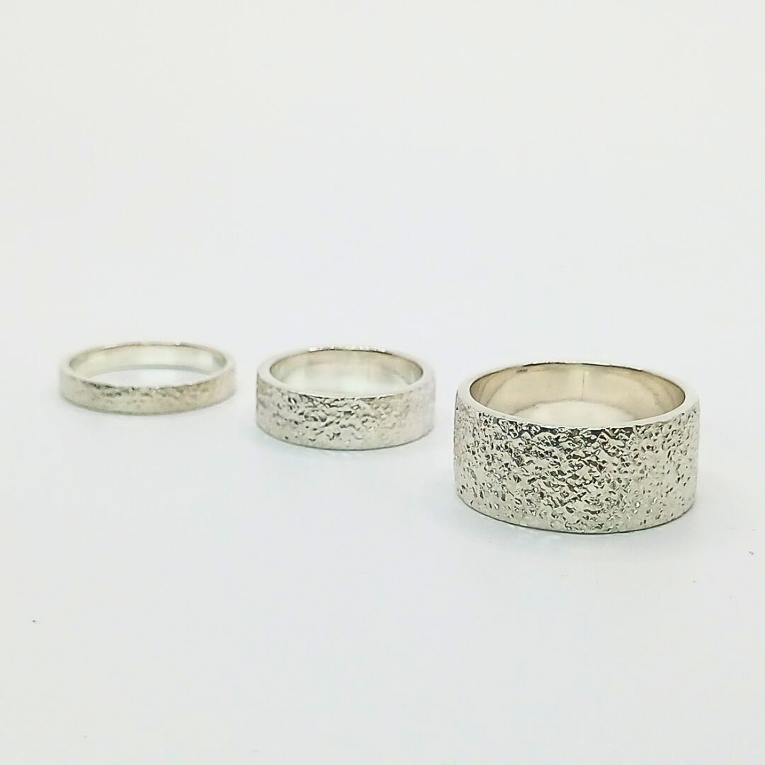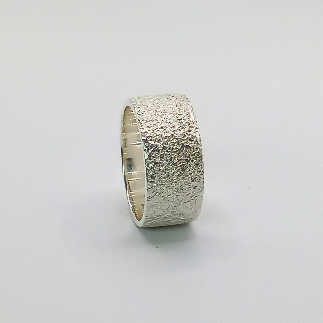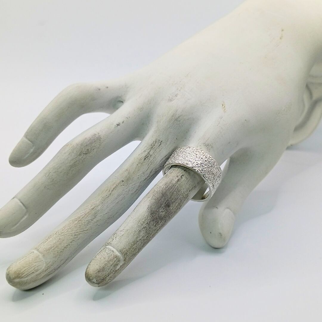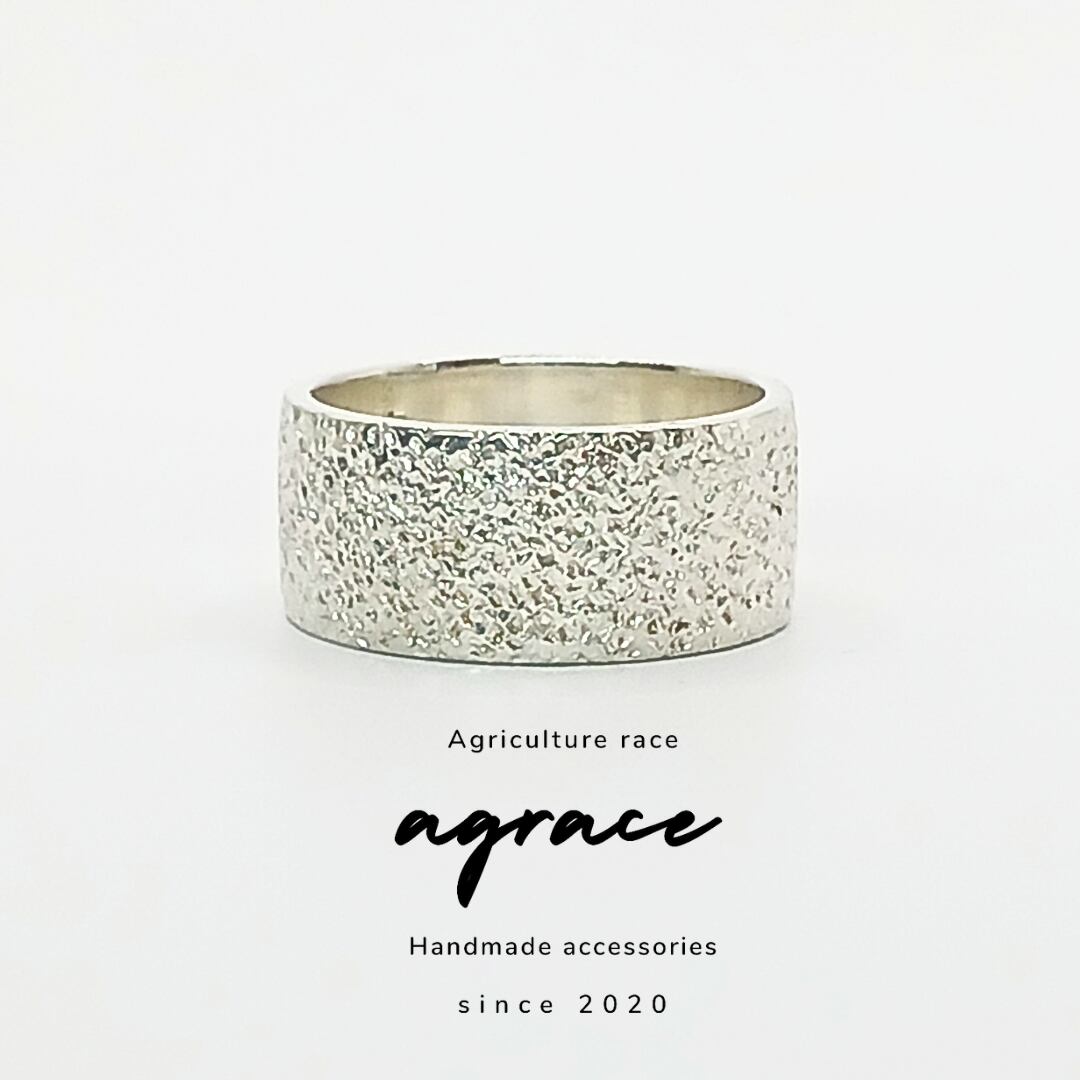 silver950の槌目で大胆に表現した幅広リング。