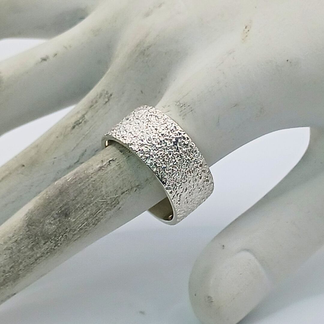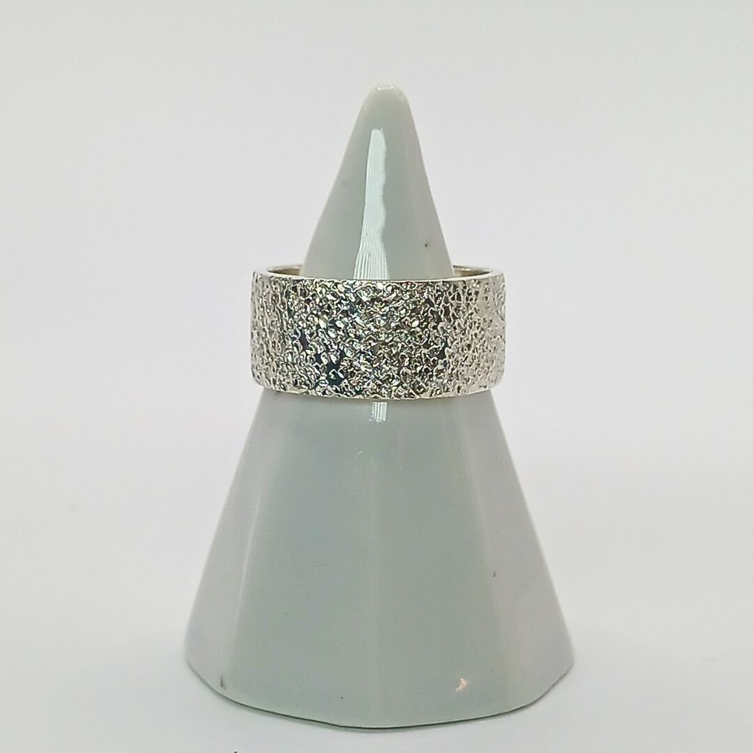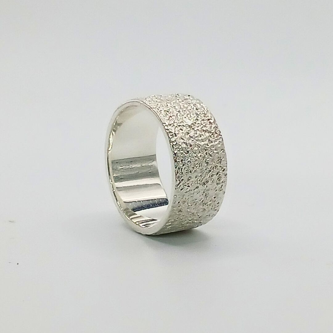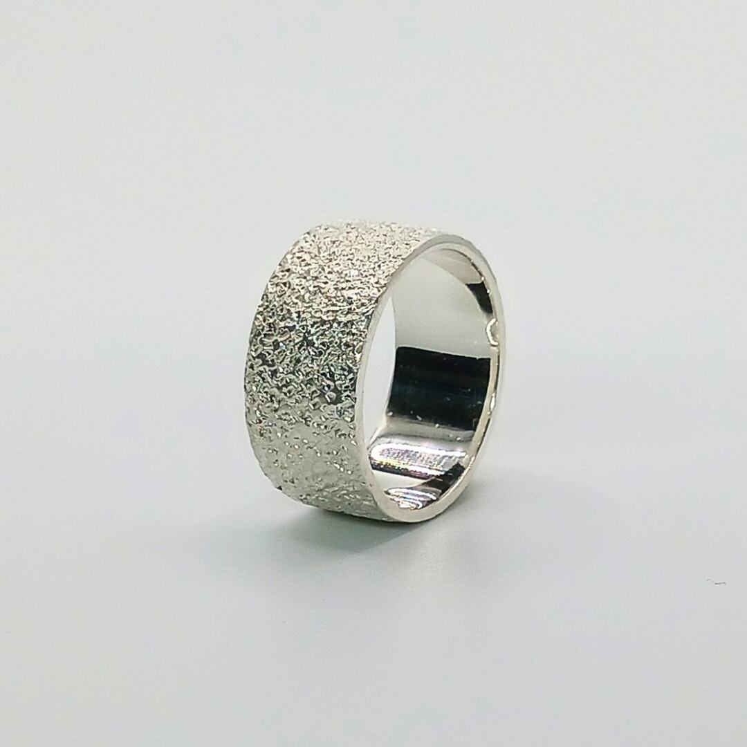silver950の槌目で大胆に表現した幅広リング。