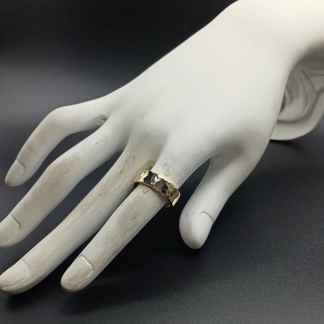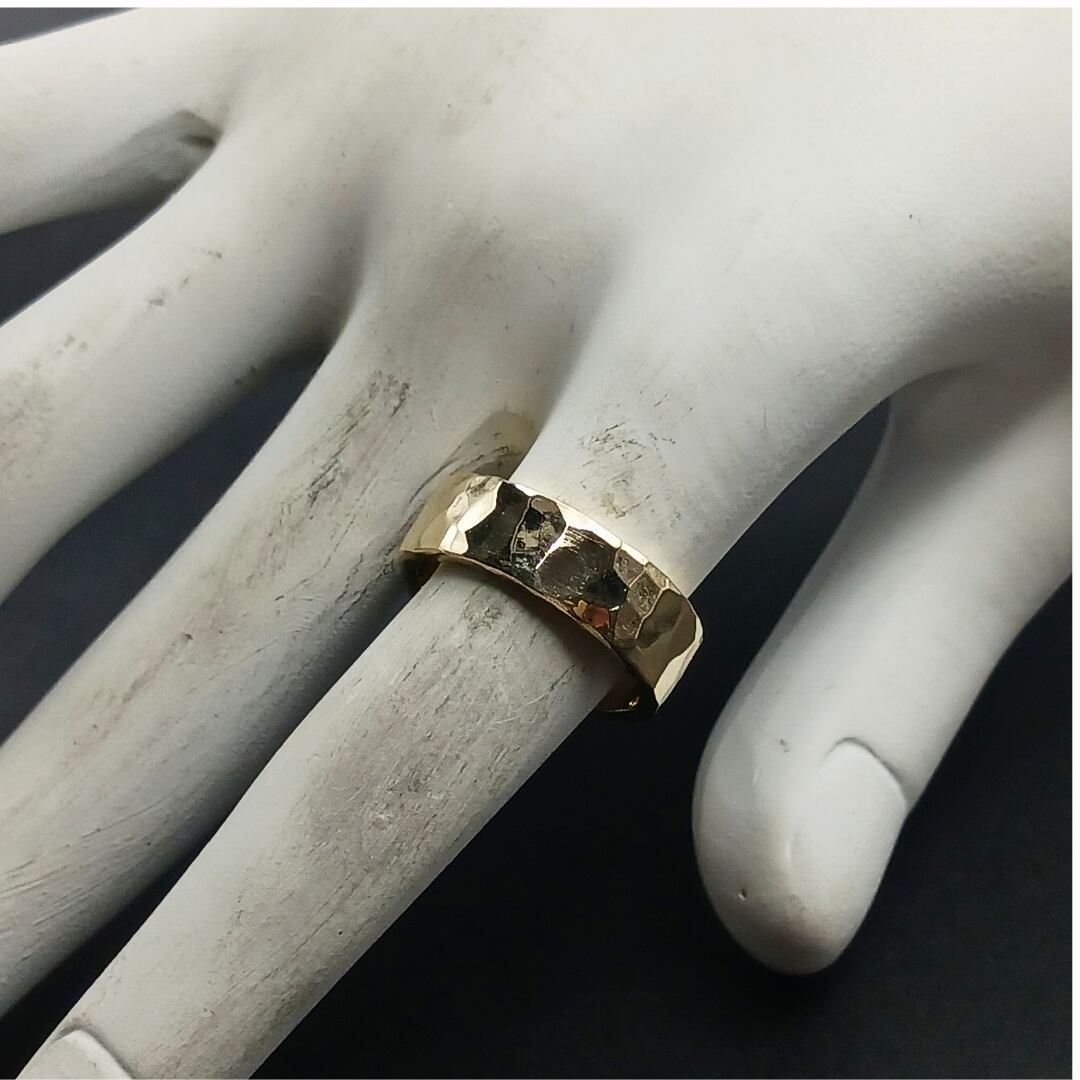 真鍮リング, 槌目リング, 平打ちリング, シンプルリング, 5mmリング, ユニセックスアクセサリー, ハンドメイドリング, 経年変化, 日常使い, ミニマル, 大人アクセサリー, ベーシックリング, 重厚感, 長く使える
