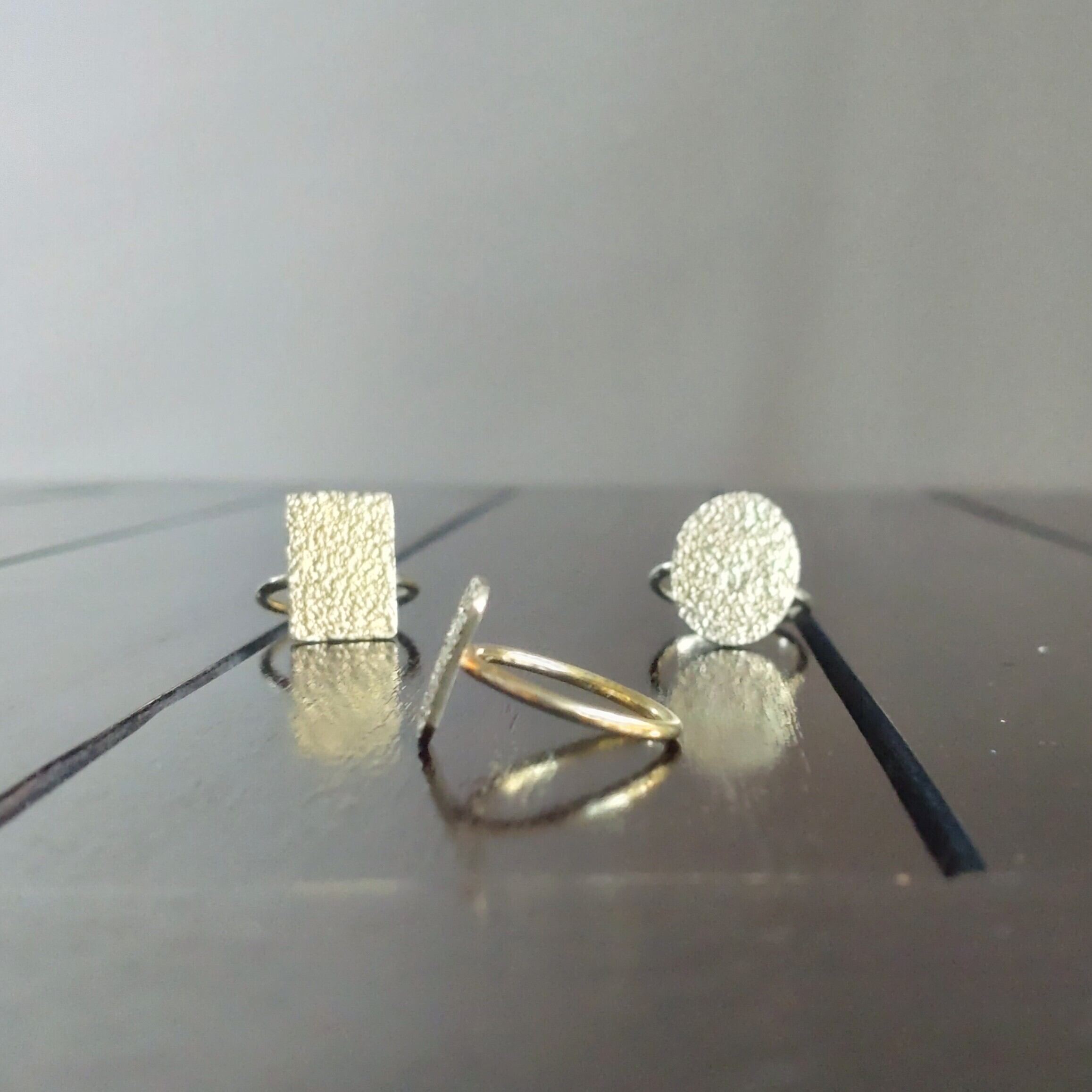 光りの加減や見る角度でキラキラと輝く様、無数に付けた特殊なテクスチャーが可愛らしく、そしてインパクトのある大きさで他とは一味違う槌目のリングを演出してくれます。