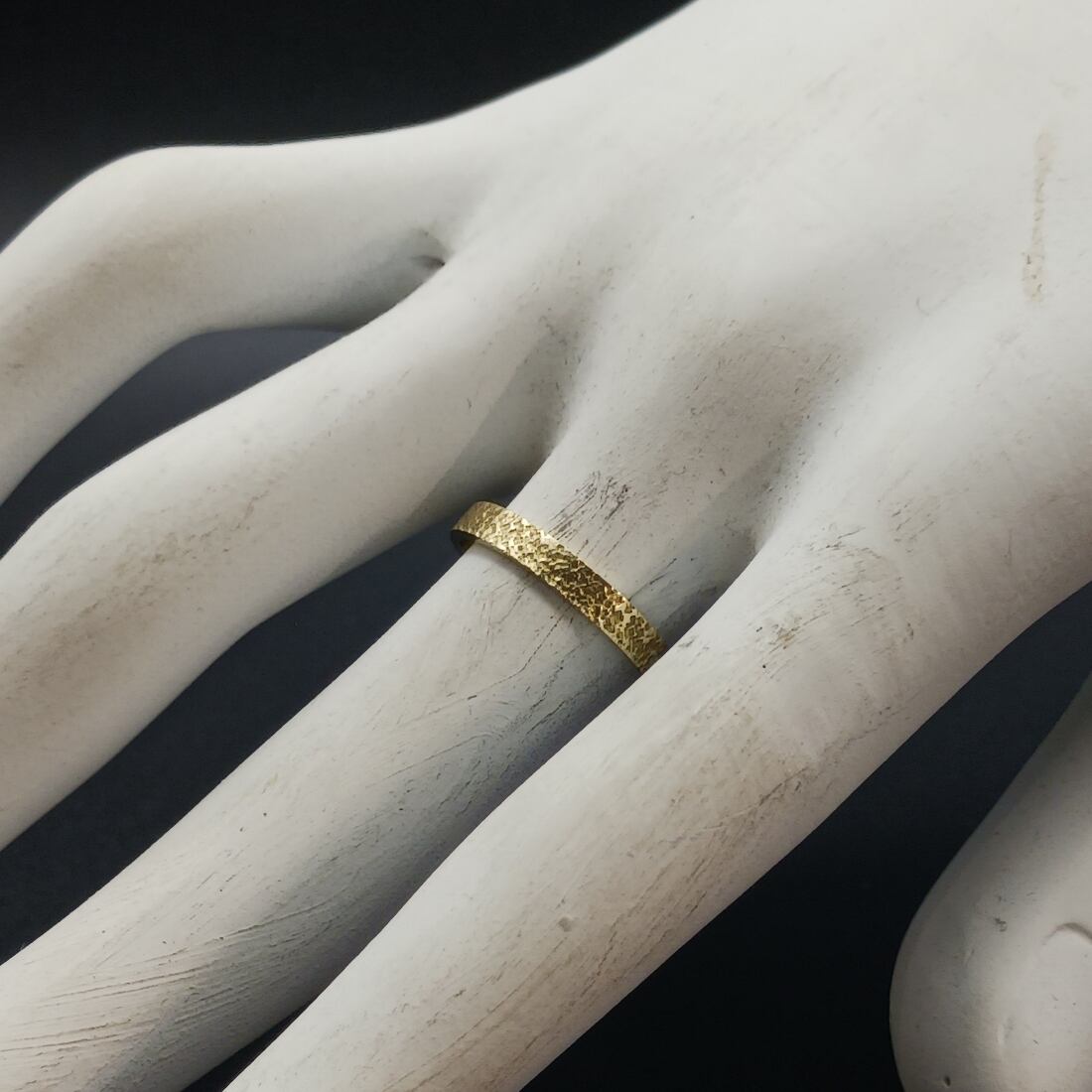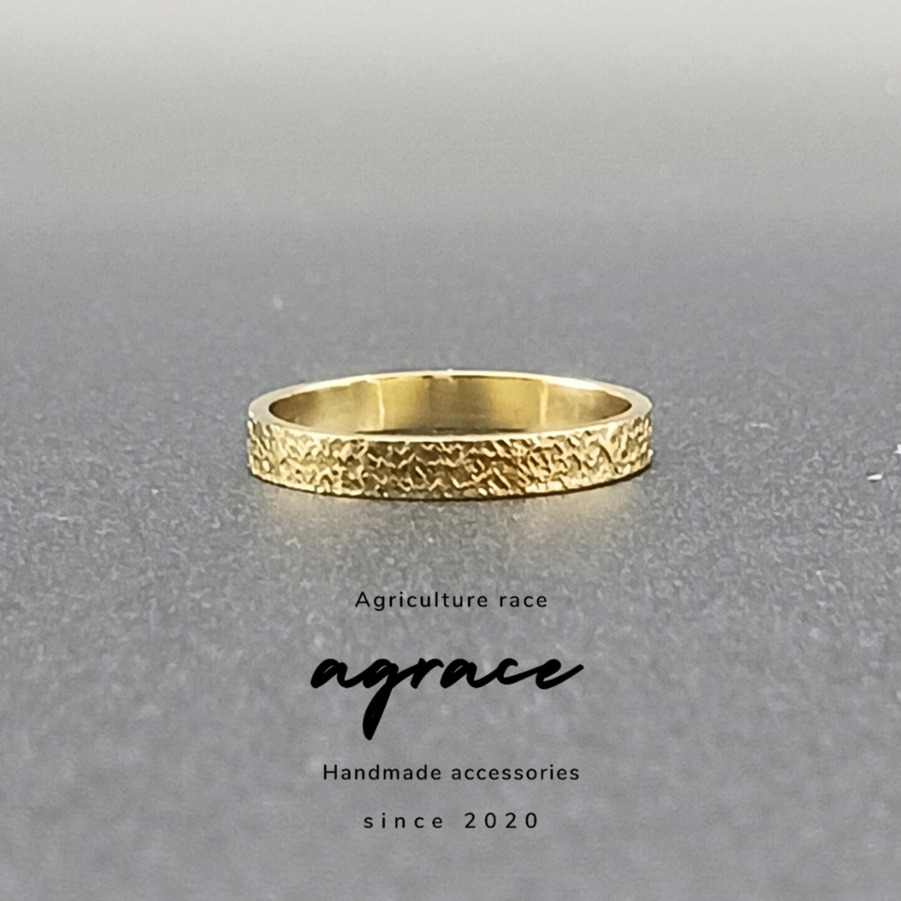 “水面 (みなも)” シリーズ — 2 mm幅 槌目真鍮リング (Brass)/キラキラ仕上げ