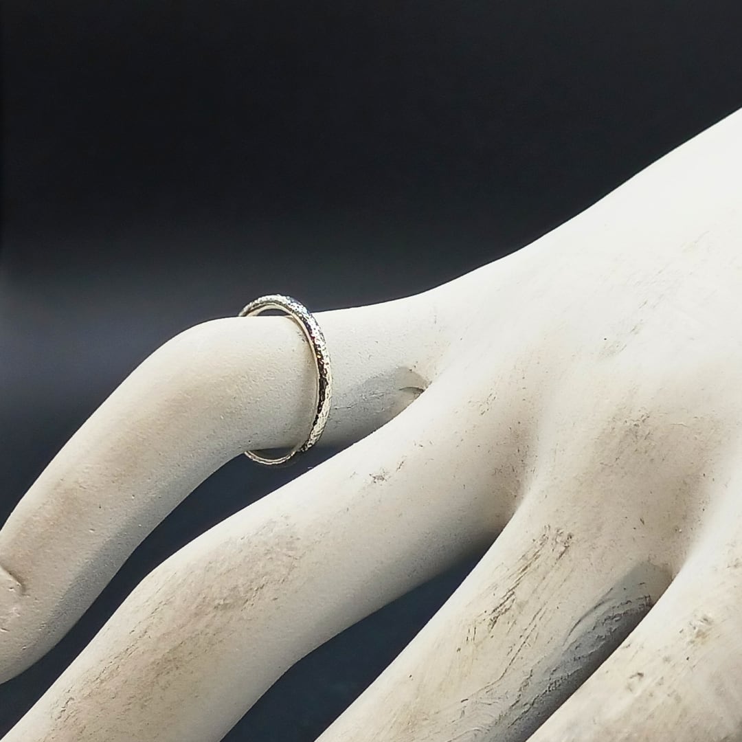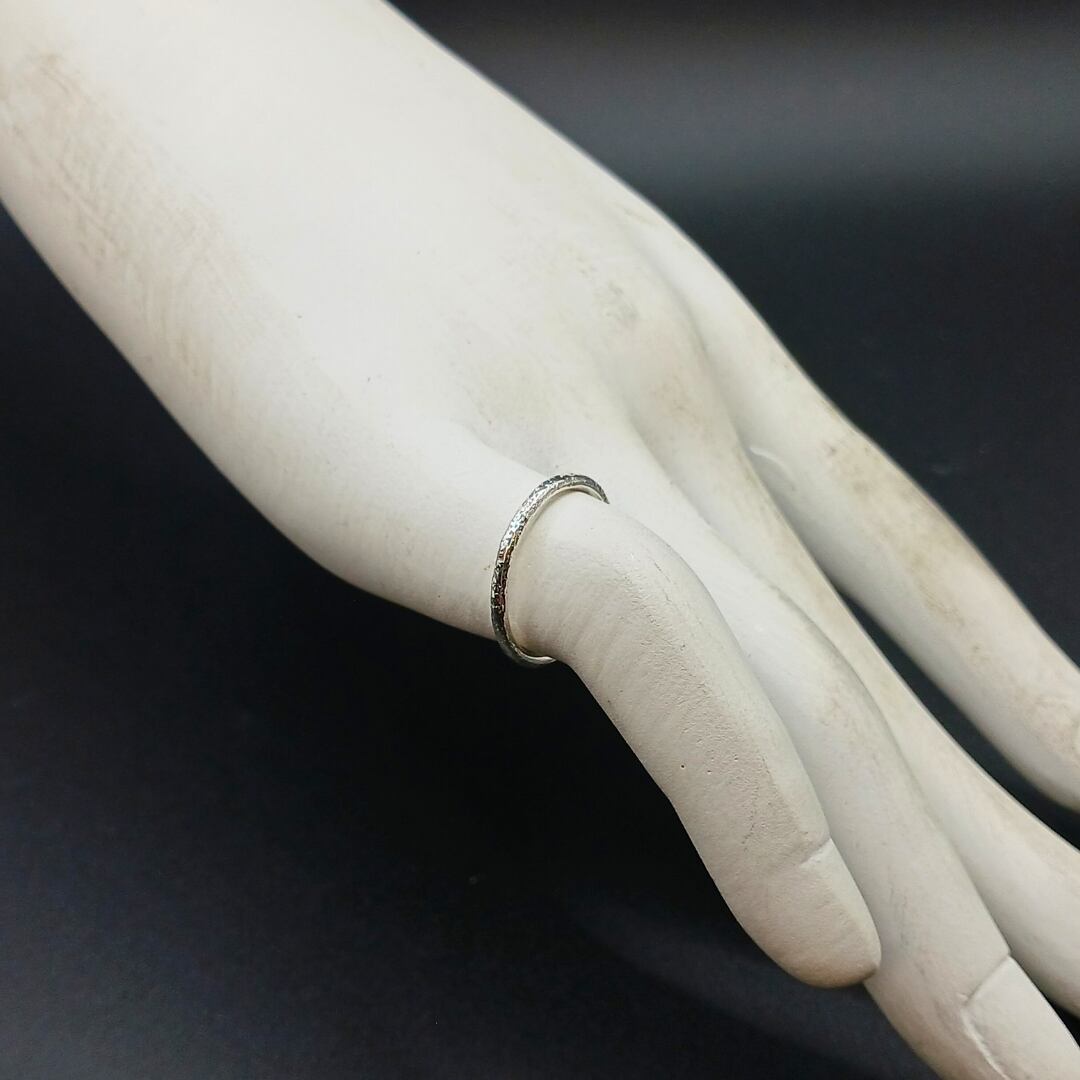 シルバーリング, silver950, 極細リング, 槌目リング, 水面モチーフ, 朝日, ミニマルリング, ユニセックスアクセサリー, 重ね着け, ハンドメイドリング, 経年変化, シンプルアクセサリー, 日常使い, 大人アクセサリー