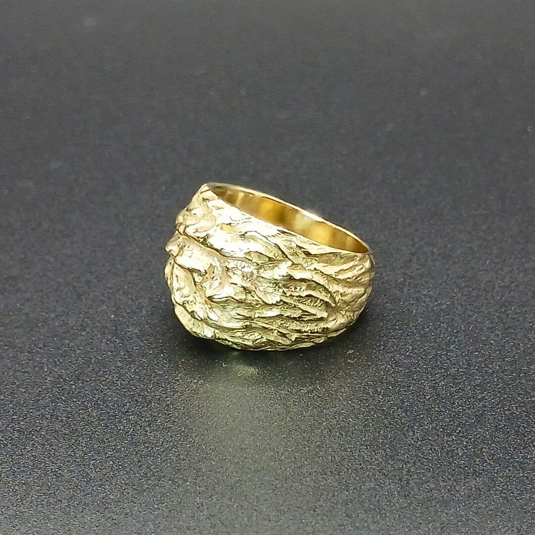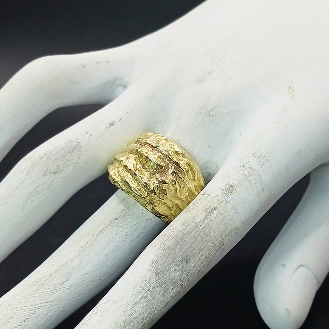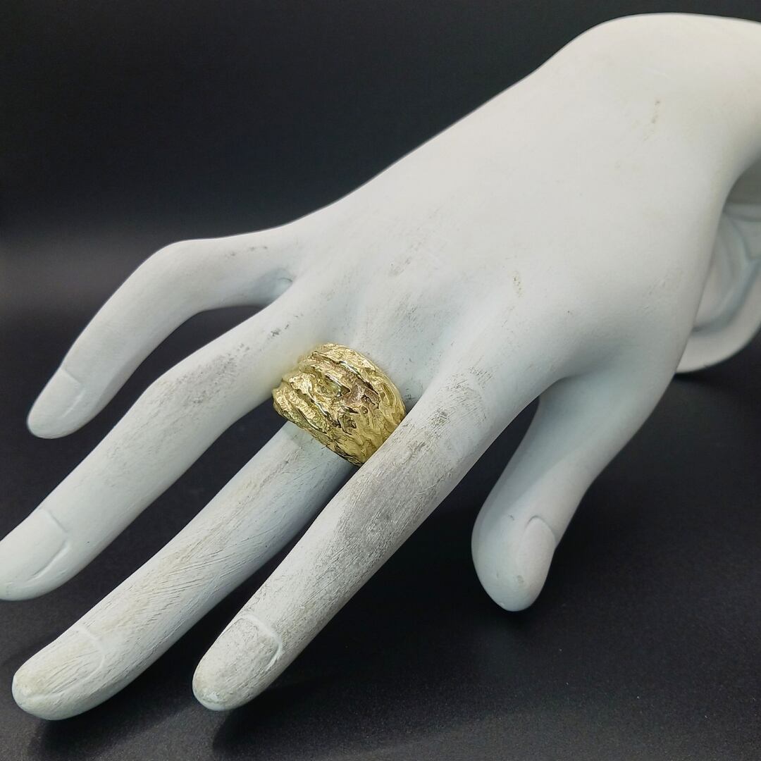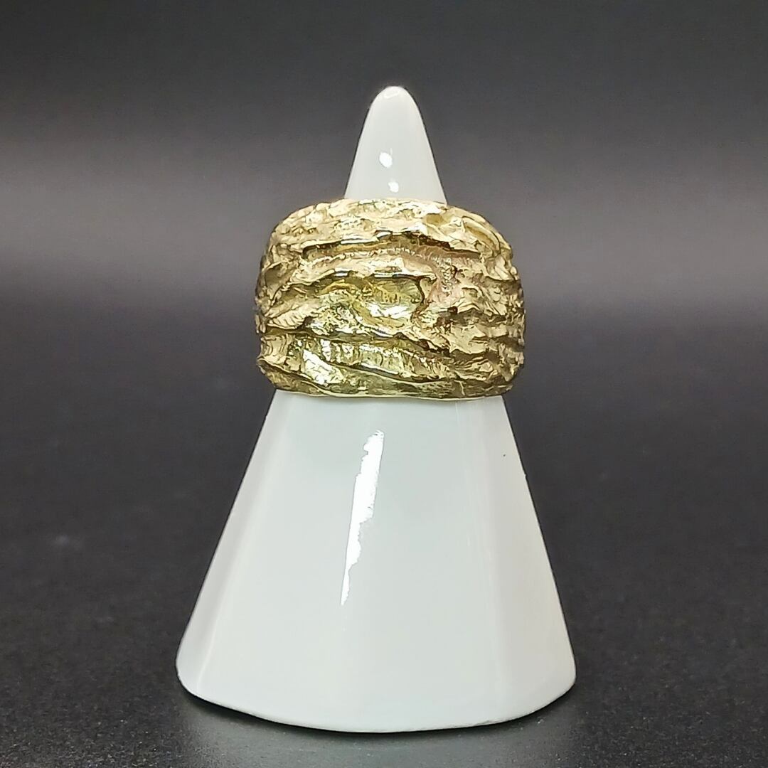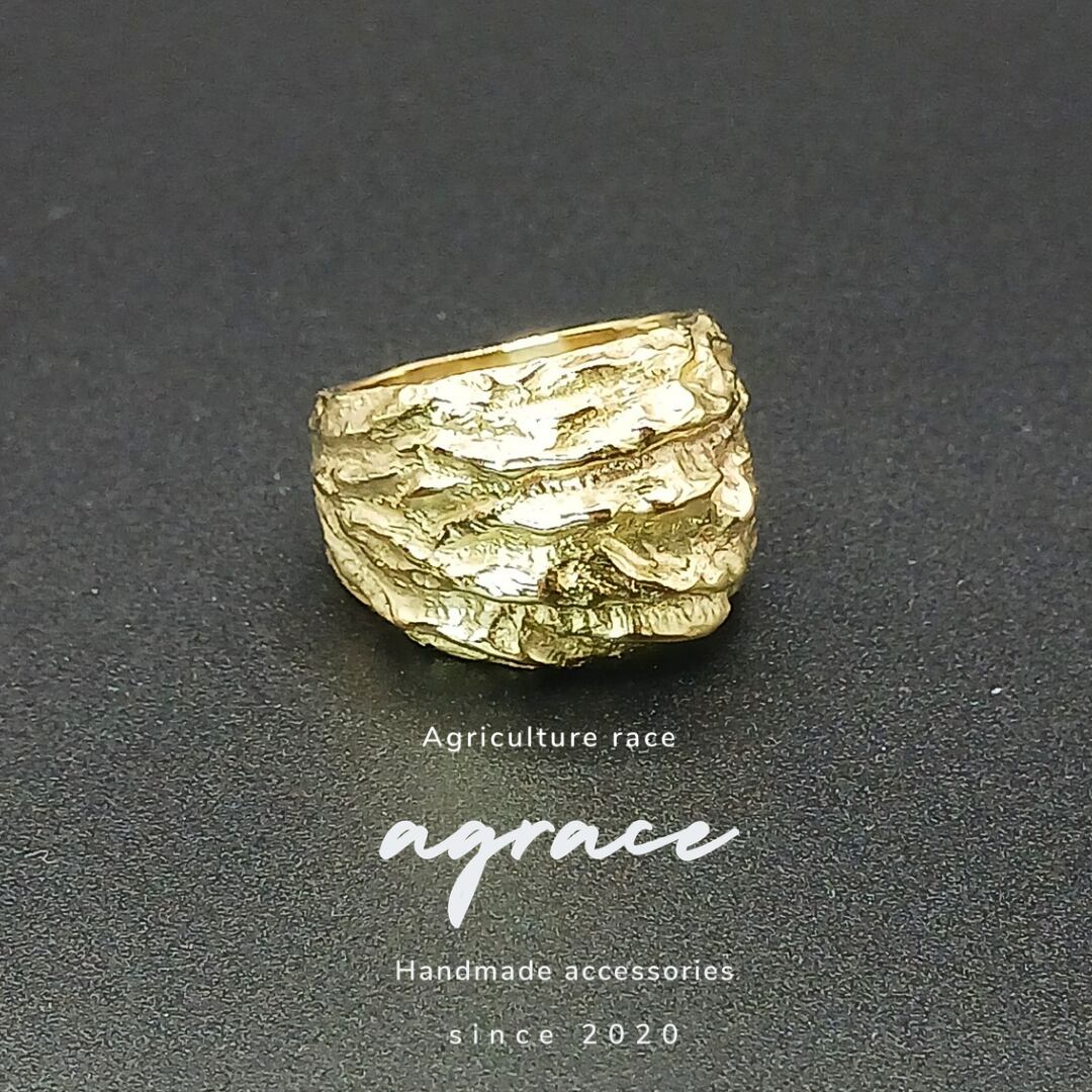 真鍮リング 大ぶりリング 幅広リング ハンドメイドリング メンズリング ユニセックスリング マット仕上げ 無骨アクセサリー シンプルリング ナチュラルモチーフ 岩モチーフ 真鍮アクセサリー 経年変化を楽しむ 一点物リング 大人カジュアル