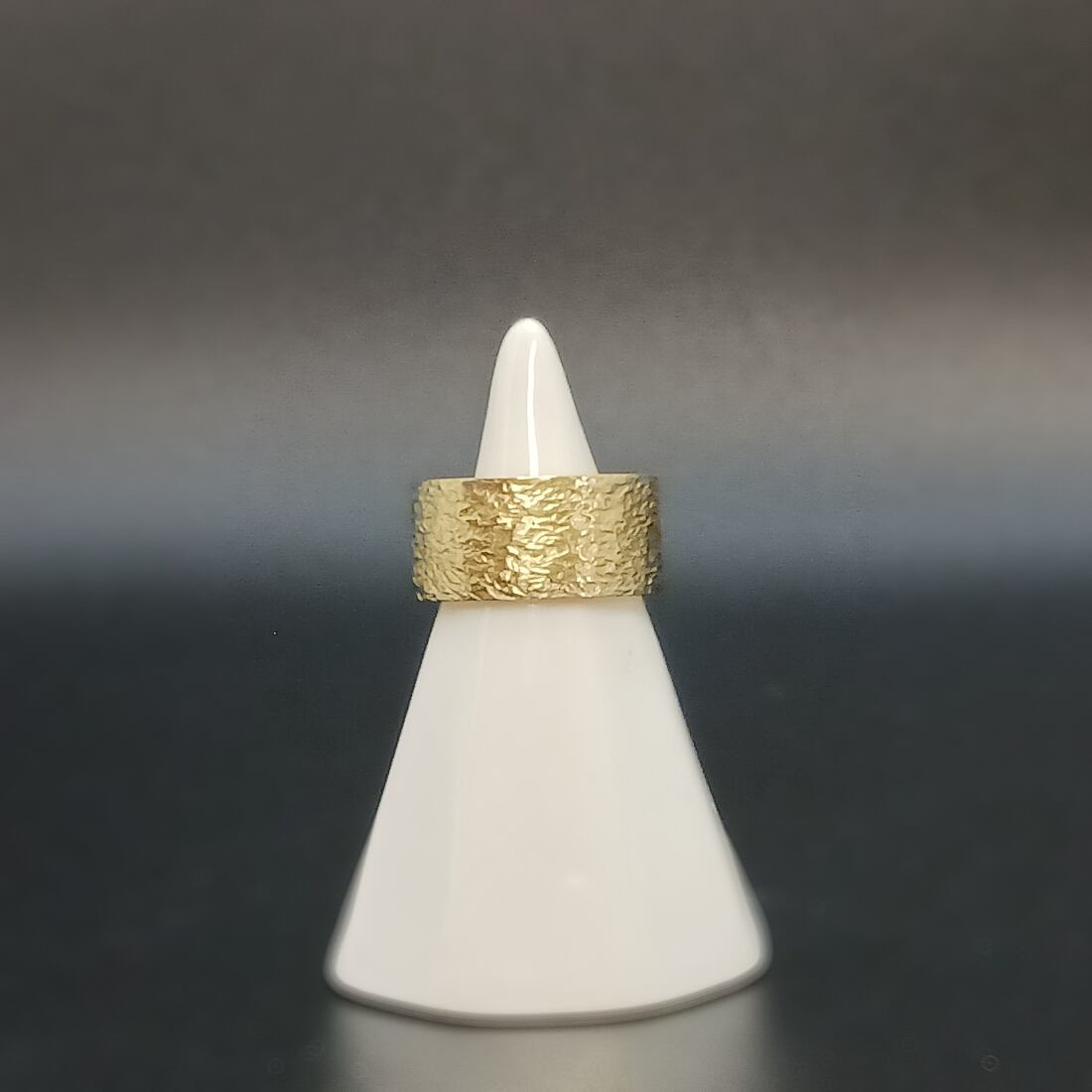 中流から上流付近のやや荒々しくも美しく流れる川を、一つ一つ手仕事でつけられたテクスチャーで表現した、シンプルなシルエットに唯一無二の自然なアジと美しさを持つリングとなっております。